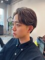 メンズセンターパート × 毛流れパーマ