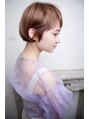 【似合わせ小顔カット】眉上前髪からサイドに繋がったマッシュライン、耳掛けスタイルもこなれ感が出て大人かわいい。カラーはヘーゼルベージュでどの季節にも対応。コンパクトで美シルエットのショートお任せ下さい。 オン眉ショート 吉祥寺クレドガーデン