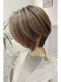 後ろが短かく、前が長い外国人風ショートボブ。上品で派手になり過ぎない極細ハイライトショートヘア。明るめなハイライトで立体感、動きをプラス。白髪ぼかしハイライトも◎大人綺麗な丸みとくびれがあるショートヘア。