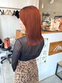 ベースが明るければ明るいほど、オレンジがわかりやすいです!パキッとしないようブラウンも混ぜているので挑戦しやすいカラーです^^福岡/天神/エクステ/シールエクステ/ボブ/縮毛矯正/髪質改善/カラー/ブリーチ/今泉