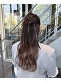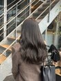 自然にゆれるゆるふわウェーブがポイントのロングスタイル。透け感の穴グレージュカラーに重すぎない前髪と顔まわりのまとまりで、やわらかい雰囲気に。ラフに仕上げても可愛くきまる、毎日ちょっと気分が上がるヘアです◎