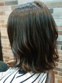 アッシュベースの暗髪に極細のハイライトを入れて重めスタイルの切りっぱなしボブに動きを♪ 外ハネはもちろん、中間からコテ巻きでウェーブをつけてより動きを出しても◎褪色してもハイライトは次回のカラーにも活かせます♪