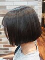 シンプルなアゴラインのボブはスタイリングも簡単♪首周りもスッキリみえます!ベージュ系の色味でボブでも重く見えないのがポイント!!