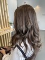 マットグレージュとブルーアッシュをまぜたカラーです。ブリーチなしでもくすみ感と透け感のバランスが良いカラーなので明るく染めたいグレイカラーにもオススメです。