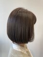 重めに見えがちなAラインのボブスタイルですが明るめのラベンダーアッシュカラーにすることでダークカラーに比べ軽めに見せれます。紫色がブレンドされたカラーは黄色くなりづらく色落ちもキレイです。