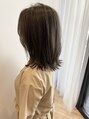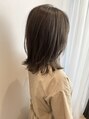 鎖骨レングスにお顔周り~表面にレイヤーを入れたスタイル。毛先にかけて軽く柔らかい質感が出るようにカットで調節しています。透明感たっぷりのシアーグレージュはネイビーが隠し味♪