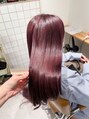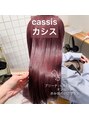 ブリーチを3ヶ月前にしてある髪にカシス色に染めました!ブラウンもしっかり入ってるのでお洋服に馴染みがいい色です!カットは重めで艶が残るようにぷつっとカットワンカール巻きです!
