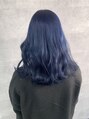 すこし濃く作ったネイビーブルーでクールな印象にしてみました。色落ちがシルバー系になるように設定しているので色が落ちていく過程も、落ちたあとも2度楽しんで頂けるカラーです。韓国風に大きく巻いてふわっと解すのがオススメです
