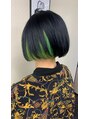 インナーカラー×エレクトリックリザード ライムグリーン ボブ