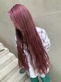 全体的にブリーチでベースを整えたあと、ピンクベースに少し紫を混ぜたピンクアッシュをのせてます。この色味にするまでにブリーチ3回の履歴があります。髪の毛の長さがある分、負担も最小限に抑えていくためにトリートメントでのケアも必須です。