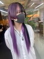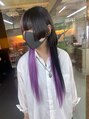 もともとの2トーンのデザインに合わせて黒と紫の2種類のエクステをつけました◎スタイルは、ロングウルフになるように耳より後ろのラインからシールエクステをつけていきました♪黒のインナー部分にもデザインとして紫をつけました◎
