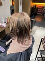 明るい部分と暗い部分のある状態から、全体をやさしく調節したブリーチで脱染を行い、色落ちも綺麗な暖色系ハイトーンカラーをON♪カットは、伸ばす過程も楽しめるボブ×ウルフに★(中山)