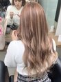 ブリーチ履歴複数回あり。ブリーチなしでつくるほんのりピンクベージュ◎シールエクステは70枚つけました♪ミルクティー系とピンクベージュ系の2種類のエクステをはりあわせて色味をだしました◎