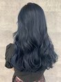 次回も明るくしやすいブルーブラック◎ほんのり青みをプラスして、韓国風なデザインに◎26mmのコテで全部外巻きしてブラシでほぐしたふわっとしたスタイルに◎ブリーチ履歴のある髪の毛にワンカラーで染めました◎