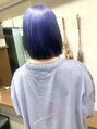ブリーチ回数1回~。(ベースによっては複数回必要)色落ちでシルバーっぽくなるように濃すぎないネイビーブルーに◎切りっぱなしボブとの組み合わせでオススメです♪