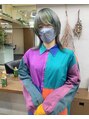 ブリーチ回数は1回。(リタッチ部部のみ使用)全体的にランダムに3色ほど寒色系のカラーをいれました◎伸ばしかけウルフに少しデザインをプラスしたスタイル◎
