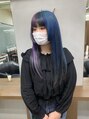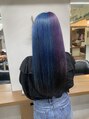 ブリーチ回数は1回、もともとブリーチ履歴が複数回あるベースでしたので、今回ブリーチは根元部分のみです◎青×紫のツートーン、インナーブラックのデザイン◎好きな色味で組み合わせれるのがツートーンのいい所です♪
