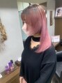 ブリーチ回数は1回。(ベースによっては2回必要)目元はリタッチ部分が気にならないようにグラデーションにして、毛先は泡目のピンクアッシュにしました◎色落ちで白っぽく、残留しすぎないように調合しました◎