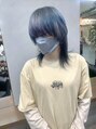 伸ばしかけウルフとデザインカラー♪ベースカラーはシルバー◎そこにポイントでブ青、緑、紫、黒をいれていきました♪今回はブリーチはせず、色落ちベースにワンカラーで土台を作りました◎