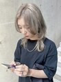 ややくすみ感のあるプラチナグレージュ。ブリーチやカラーの履歴によるムラ修正を丁寧に行い、アンダーの状態を整えることで希望の仕上がりを叶えました!(color/吉田) センターパートに合う、マッシュ風の前下がりウルフです♪ (cut/中山)