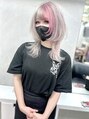 夏ミディアムウルフカット×ホワイトベージュ×ラベンダーピンク