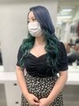ネイビーブルーとグリーンのインナーカラーデザイン◎ネイビーブルーの所は色落ち後シルバーっぽくなるのと、グリーンも苔っぽくならないように調整しているので、色が落ちてきても楽しめるカラーで◎