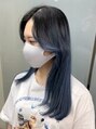伸びてきた根本を活かしてのシングルカラーのみでのグラデーション風ネイビーカラー♪色落ちはシルバー、グレー系に落ちていきます^ ^*毛先のブリーチ回数2回