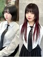 肩上でそろったボブから、シールエクステでインナーカラー&ロングウルフに変身☆顔まわりにもレイヤーを入れる事でトレンドヘアに♪普段、ストレートヘアが多いとのことなので、軽めの仕上がりにしています。重ためが好きな方はエクステ追加OKです◎