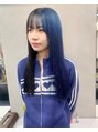 ツートーンカラーとシールエクステの組み合わせ○分け方は、センターより少しずらして分けてます☆真っ黒になるようにカラーして、ネイビーブルー部分のみブリーチしてからカラーしました○シールエクステもそれに合わせてツートーンでつけてます○