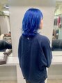 ブリーチ1回でつくるネイビーブルー。ここまでしっかり発色できると、色落ちも緑っぽくくすまず、シルバーっぽく落ちてくれるので色落ち後も楽しめるカラーです◎この長さの方のスタイリングは外ハネやウェーブもオススメです♪