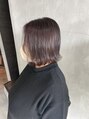 顎ラインより少し長めな前下がりボブのスタイルです!切りっぱなしスタイルは巻き方によって内巻きや外ハネができるので気分でスタイルチェンジできます◎カラーはバイオレットグレージュで艶のあるくすみカラーです!