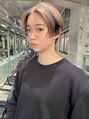 前下がりのショートスタイル。モードで少しカッコいい雰囲気になります。カラーは上はハイトーンのベージュで下は暗めにしてコントラストを出したカラーになっております。