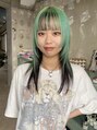 表面をブリーチして、ペールグリーンに◎中は地毛なのでダメージは最小限に◎ 全体にレイヤーを入れてよりデザインがわかりやすく、顔まわりは姫カットで個性的にデザインしました!