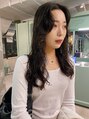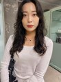 大人っぽさを活かして前髪はセンター分け、表面にレイヤーを入れてパーマが動きやすいようにカットしました。デジタルパーマを使って大きめカールのウェーブヘアを楽しめるようにパーマをかけました。