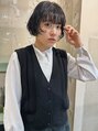 ショートからボブに伸ばしている途中に。襟足はボブに近づくようにギリギリまでカット。ショートの名残を活かして顔周りのレイヤーカットも。顔周りも含め、ショートの面影が活きるようにパーマもしました。