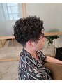 全体に少し強めのスパイラルパーマをかけて大人っぽい前下がりのスタイルでカットしています。セットが苦手な方におすすめです♪