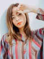 無造作な毛先の動きがポイントのミディアムロングスタイル。縦長なシルエットになるようにレイヤーを入れているので、動くと揺れる軽い仕上がりに。カラーは透明感のあるベージュ系で、細かくハイライトを入れて立体感をプラス。
