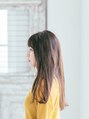 全体には重さを残したストレートスタイル。毛先に向かって軽さがでるようにアウトラインは前上がりにして表面にレイヤーをいれて自然なストレートに☆直毛の方はゆるめパーマで柔らかさを出してあげるのがおすすめ!カット、カラー