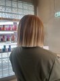 肩上の切りっぱなしボブにハイトーンのアンブレラカラーが◎思いっきり明るくしたいけどプリンが目立つのが嫌な方や、フルブリーチや他のデザインカラーに飽きた方におすすめです!