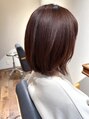 ボブから伸ばし中、肩につく長さで広がりが気になる頃なのでスッキリシルエットに。ポイントにフェイスラインにもレイヤーを。カラーは赤系ブラウンでツヤ感アップ。