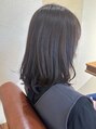 とまりやすいミディアムスタイル。カラーはラベンダーブラウンで透明感を。