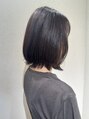 オリーブブラウンでしっかり赤みを抑えた暗めカラーに。外ハネしやすく裾を軽くしたボブ。耳にかけても丸くなりすぎずおさまります。
