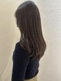 ツヤ感ロング。赤みを抑えた落ち着いたトーンのオリーブブラウン。髪がキレイに見える色持ちの良いツヤ感カラーはお任せください。
