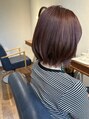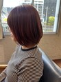 明るめのレッドカラー。黄色みもしっかり消えてキレイです。ボブに少しレイヤーを入れてふんわり軽さも感じるスタイルに。