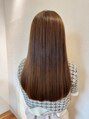ブラウンとベージュを混ぜた色味で染めてます。髪に柔らかさと透明感が出る明るさにさせていただきました。