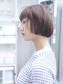 オン眉/切りっぱなし/ぱっつんボブ/ピンクブラウン/センター北