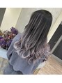 ペールトーンのラベンダーカラー☆バレイヤージュになっているカラーデザインは実はシールエクステで作ってるんです♪完全ブリーチなしデザインカラーです!