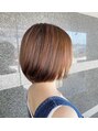 襟足までスッキリさせたスタイルで少し丸みをつけて柔らかい印象に カラーも明るめにしているので 重さを感じさせないように。