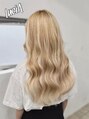 ケアブリーチで明るくし抜きっぱなしブロンドカラーにシールエクステをプラスしてデザインをしました