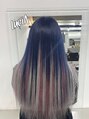 ブリーチでコバルトブルーカラー☆ルシアのエクステはとってもスピーディーに自然に地毛と馴染みます♪地毛カットで境目をボカせば完璧に!シールエクステの毛質はレミー100%の人毛で長さも長く54cm♪巻く事は勿論O.K!一か月経過してもサラサラを維持☆